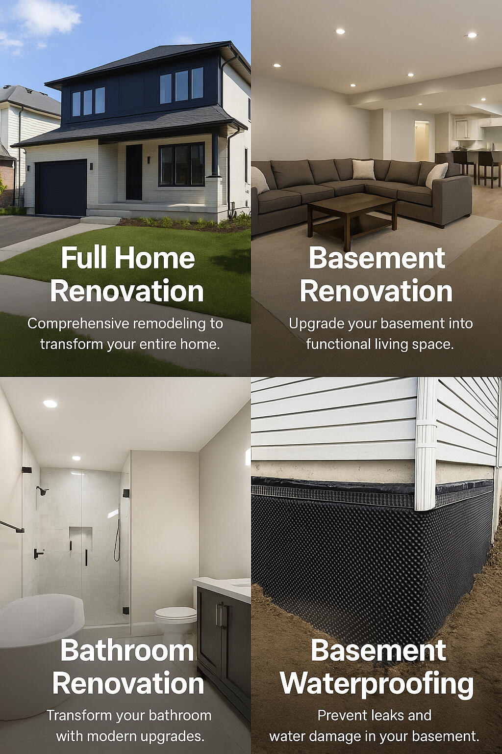 From bathroom upgrades to basement waterproofing, we focus on quality materials, clear communication, and clean workmanship. Every project is completed on time and tailored to your home’s needs.